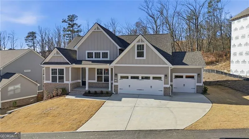 Move-In Ready New Construction Ranch with - 3 Car Garage & Outdoor Fireplace! This home is a must-see! The Dalton plan offers a beautifully designed ranch on a full unfinished basement, providing immediate comfort with room to grow. Featuring 3 bedrooms, 3 full bathrooms, a private office/flex space, and a 3-car garage, this home delivers the perfect blend of style, function, and future potential. The main level owner's suite includes a spacious private bath and generous closet space, while an additional main-floor bedroom and full bath provide ideal accommodations for guests or multigenerational living. A dedicated private office or flex room makes working from home effortless. At the heart of the home, the open-concept kitchen and great room showcase vaulted ceilings, a cozy fireplace with custom built-ins, and abundant natural light. The gourmet kitchen is appointed with quartz countertops, LG stainless steel appliances, a large center island, a bright breakfast area, and an elegant formal dining room-perfect for entertaining. Upstairs, a private bedroom, full bath, and expansive loft create an ideal guest retreat, teen suite, or bonus living space. Outdoor living shines with a covered back patio featuring an outdoor fireplace, perfect for year-round enjoyment, grilling, and entertaining. Located in The Manor at Gainesville Township, residents enjoy resort-style amenities including a swim center with lap pool and kids' play area, lighted tennis and pickleball courts, dog park, pavilion on the great lawn, disc golf course, and miles of walking trails. The community is adjacent to the 89-acre J. Melvin Cooper Youth Athletic Complex (The Coop) with athletic fields, playgrounds, and concessions. With easy interstate access, nearby shopping and dining, and close proximity to Northeast Georgia Medical Center, this Gainesville GA new construction home offers unmatched convenience, lifestyle, and long-term value. Schedule your private showing today and experience one of the best ranch homes with a basement in Gainesville, Georgia.